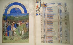 In een getijdenboek staan getijden. Dat zijn dagelijkse gebeden van het Rooms-katholieke geloof. Monniken baden deze op vaste tijden (daarom heten de gebeden heures of getijden), maar ook sommige leken deden dit. Zoals de duc de Berry, een devoot man. Het meest bijzondere aan de Très Riches Heures du duc de Berry is echter niet de tekst, maar de miniaturen van de gebroeders Van Lymborch. Vooral de paginagrote schilderingen bij de kalender hebben internationale roem verworven.